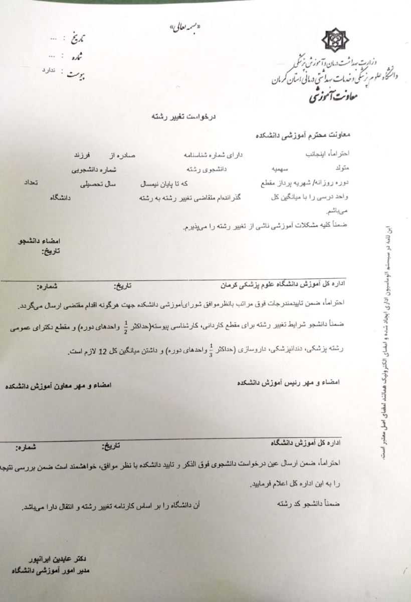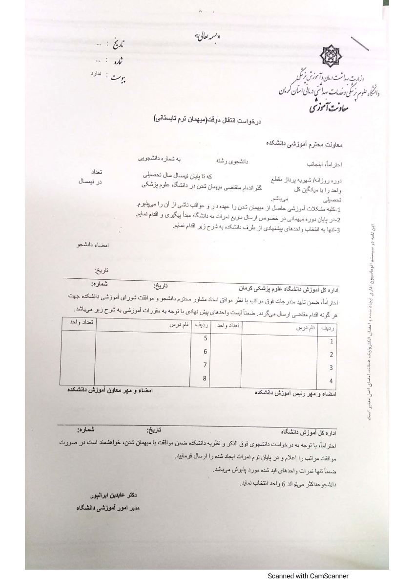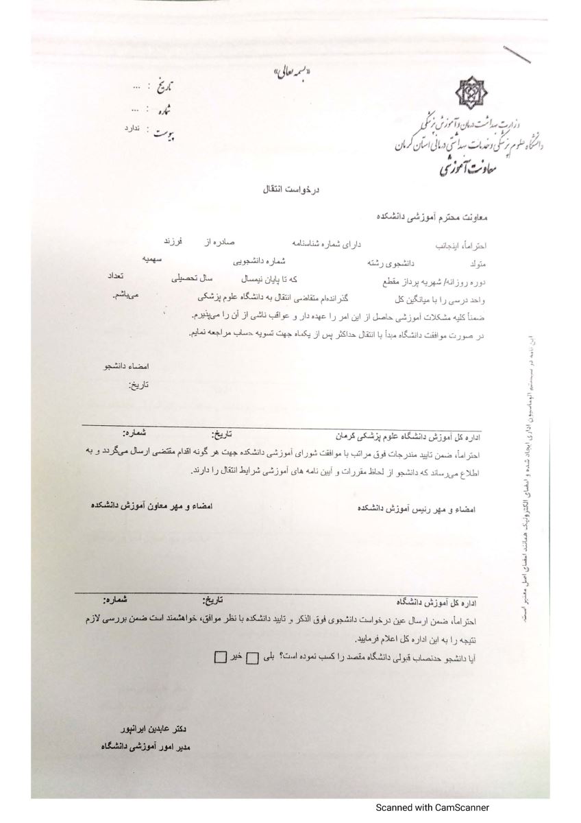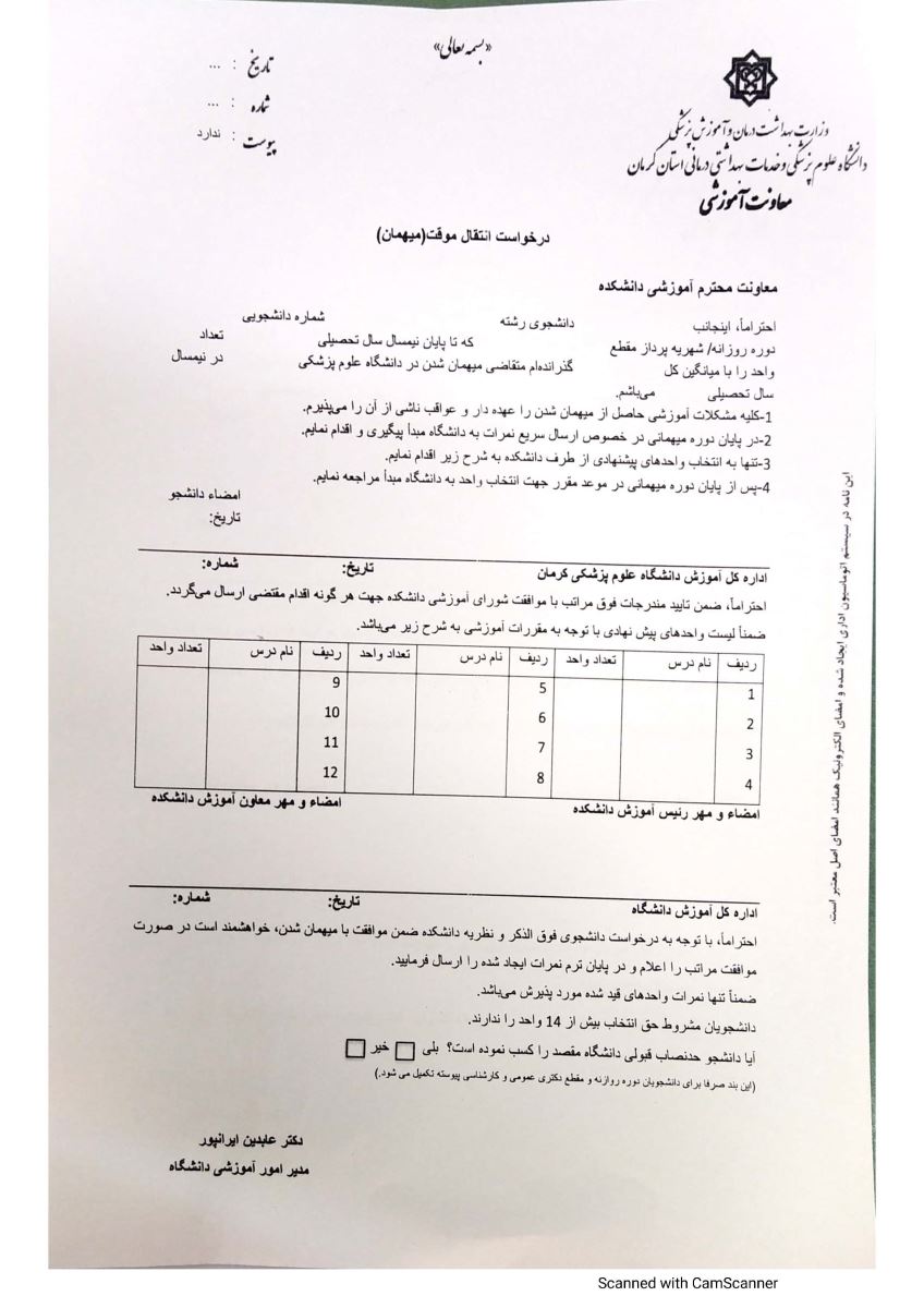 فرم درخواست انتقال موقت (ترم تابستانی) دریافت فایل