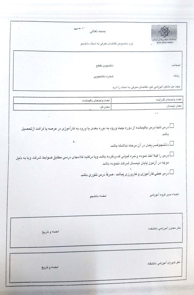 فرم  تقاضای بررسی و حل مسائل دانشجویی